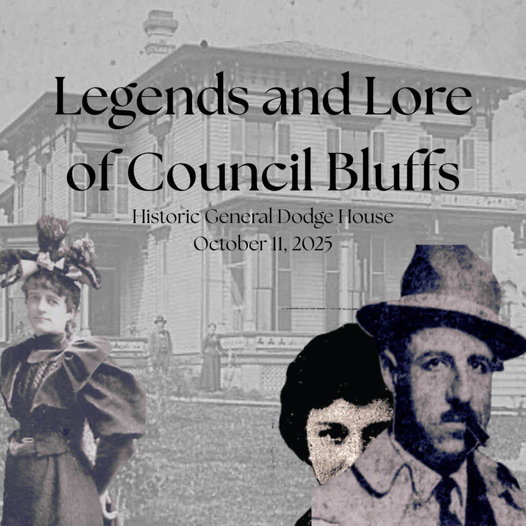 Please note, this presentation will be in the 3rd Floor Ballroom of the Historic General Dodge House. We do not have an elevator and there are many stairs to reach the Ballroom.